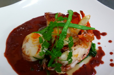 - 青森県産天然鯛と手長エビのソテー バジルソース